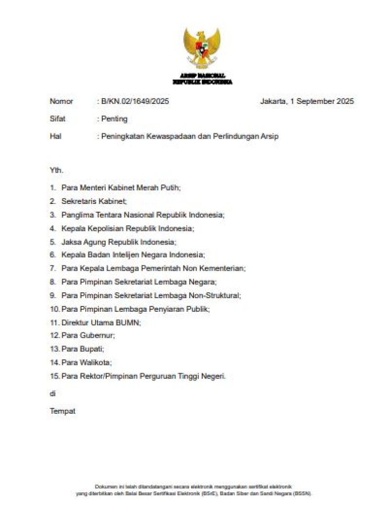 Kategori Smart Government (Pemerintah Cerdas) Kategori: Smart Government (Pemerintah Cerdas) Sekretariat 11 Okt 2025 11:08:00 15 Talkshow IPI " Peran Organisasi Profesi Pustakawan dalam Membantu Peningkatan Kompetensi dan Profesionalisme Pustakawan" Selengkapnya Kategori: Smart Government (Pemerintah Cerdas) Sekretariat 08 Okt 2025 10:57:00 24 DINPUSIP GELAR FESTIVAL LITERASI Selengkapnya Kategori: Smart Government (Pemerintah Cerdas) Bidang Perpustakaan 02 Okt 2025 10:29:00 7 Perpustakaan keliling di SDN Sidoharjo Candiroto Selengkapnya Kategori: Smart Government (Pemerintah Cerdas) Sekretariat 02 Okt 2025 10:07:00 2 Apel luar biasa dalam rangka Hari Kesaktian Pancasila Selengkapnya Kategori: Smart Government (Pemerintah Cerdas) Bidang Perpustakaan 25 Sep 2025 12:35:00 18 Penerimaan kunjungan dari Kab. Magelang terkait pelaporan DAK NF 2025 Selengkapnya Kategori: Smart Government (Pemerintah Cerdas) Bidang Kearsipan 23 Sep 2025 15:15:00 20 Kegiatan Sosialisasi Srikandi untuk Kelurahan Selengkapnya Kategori: Smart Government (Pemerintah Cerdas) Sekretariat 22 Sep 2025 11:29:00 23 Kegiatan Aksi Gotong Royong Peringatan World Cleaning Day (WCD) 2025 Dinas Perpustakaan dan Kearsipan Kabupaten Temanggung Selengkapnya Kategori: Smart Government (Pemerintah Cerdas) Sekretariat 18 Sep 2025 15:11:00 22 Sosialisasi Pelaporan SPT melalui coretax Selengkapnya Kategori: Smart Government (Pemerintah Cerdas) Bidang Perpustakaan 18 Sep 2025 14:42:00 36 Rapat Koordinasi persiapan kegiatan Festival Literasi dengan lintas OPD Selengkapnya Kategori: Smart Government (Pemerintah Cerdas) Bidang Perpustakaan 12 Sep 2025 10:54:00 26 Rapat Koordinasi IPI / Ikatan Pustakawan Indonesia Kabupaten Temanggung Selengkapnya Kategori: Smart Government (Pemerintah Cerdas) Sekretariat 11 Sep 2025 10:14:00 13 Zoom pemberkasan NIPPK Paruh Waktu 2025 Selengkapnya Kategori: Smart Government (Pemerintah Cerdas) Bidang Kearsipan 01 Sep 2025 10:13:00 30 Surat Himbauan Kepala ANRI Nomor : B/KN.02/1649/2025 tanggal 1 September 2025 Perihal Peningkatan Kewaspadaan dan Perlindungan Arsip Selengkapnya 123NextLast