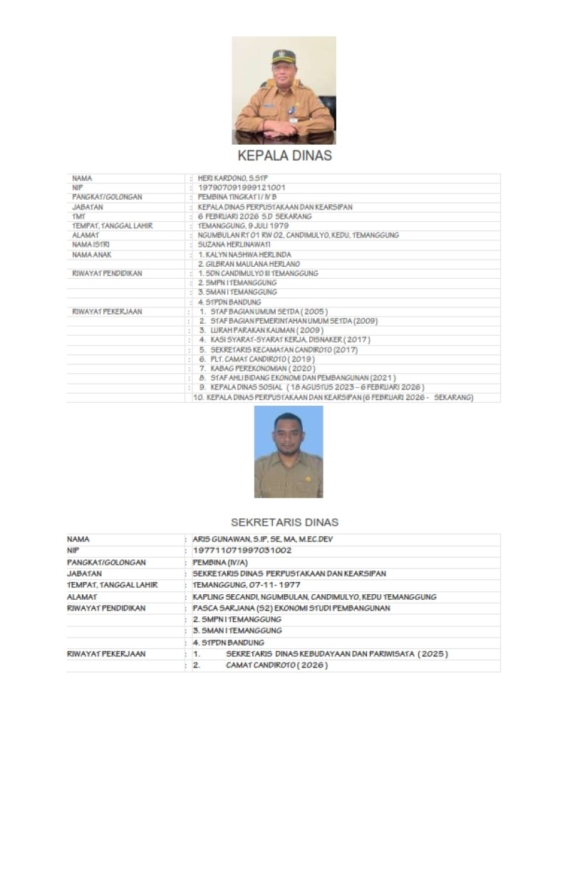 PROFIL PIMPINAN DINAS PERPUSTAKAAN DAN KEARSIPAN KABUPATEN TEMANGGUNG